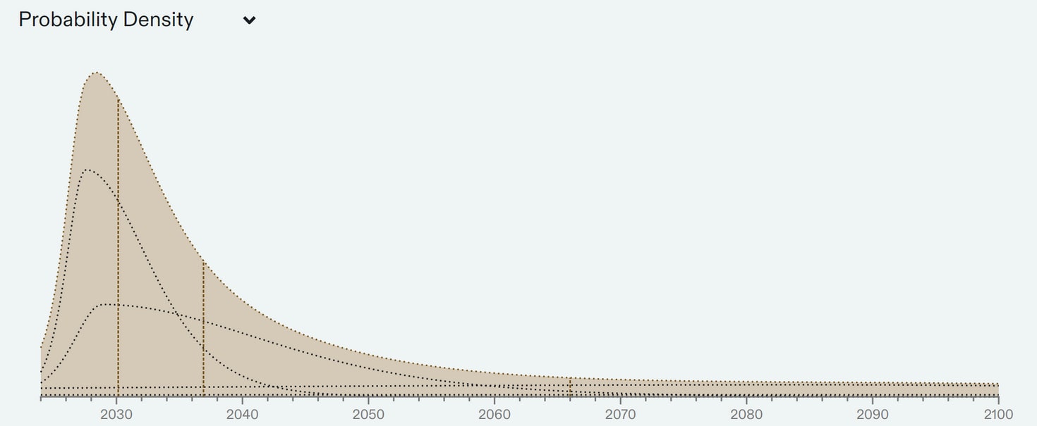 Epoch AI has built an interactive model that allows you to plug in your own estimates over these parameters into this model, and obtain a distribution over the arrival of TAI.