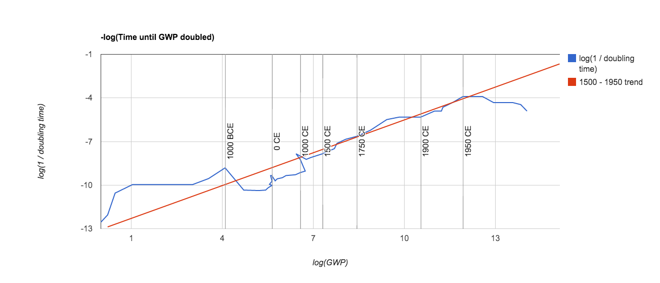 The intention of the first condition is highlighted throughout this article, as I describe the thesis that the most salient effect of AI will be its ability to automate labor, triggering a productivity explosion. The second milestone is included in order to cover scenarios in which the world is rapidly transformed by AI but this change is not reflected in GDP statistics – for example, if GDP is systematically and drastically mismeasured. The third milestone covers scenarios in which AI severely adversely impacts the world, even though it did not cause a productivity explosion. More specifically, I want to include the hard takeoff scenario considered by Eliezer Yudkowsky and Nick Bostrom, as it’s hard to argue that AI is not “transformative” in this case, even if AI does not cause GWP or energy consumption to expand dramatically. ↩ ↩2