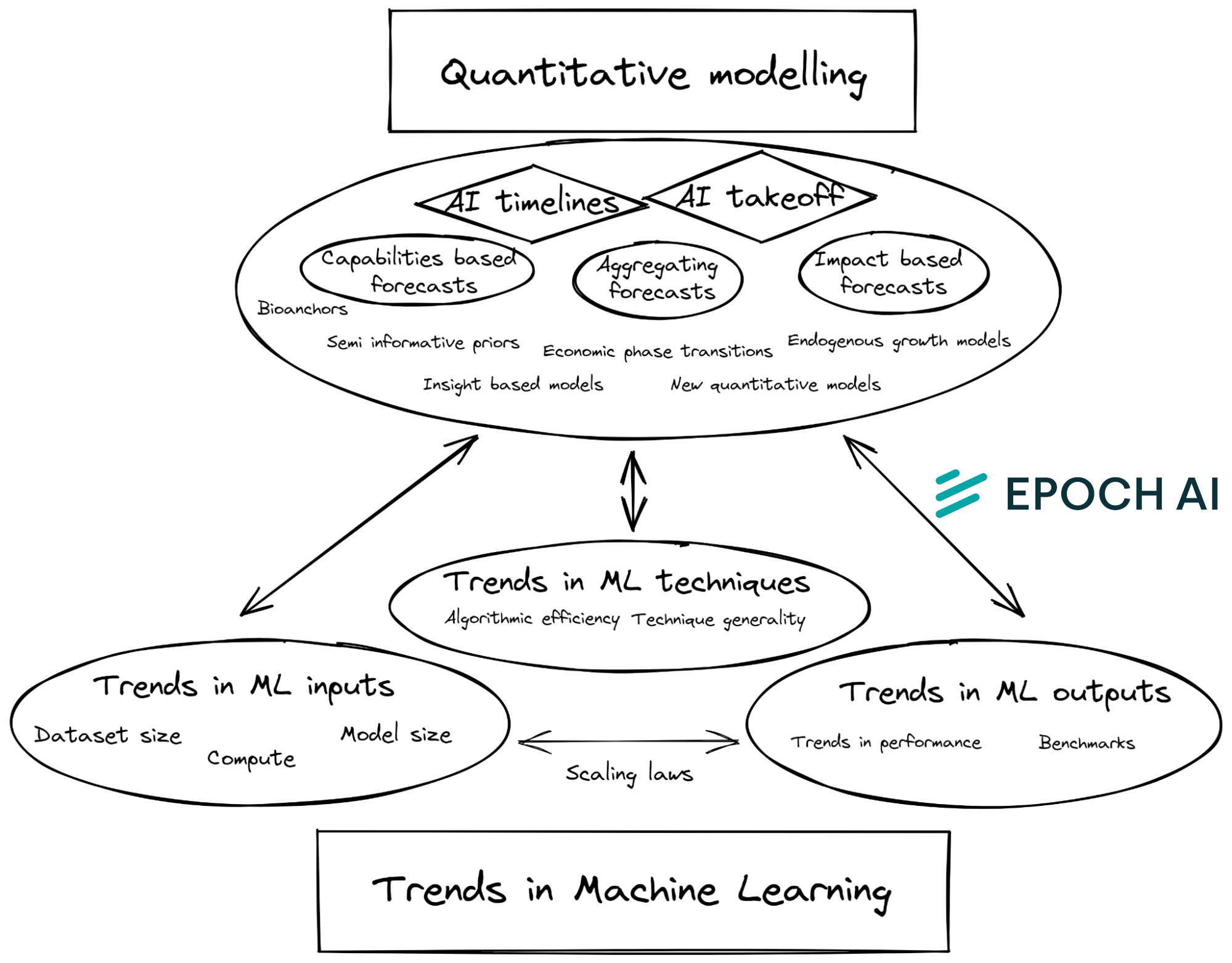 Our work at Epoch AI encompasses two interconnected lines of research: