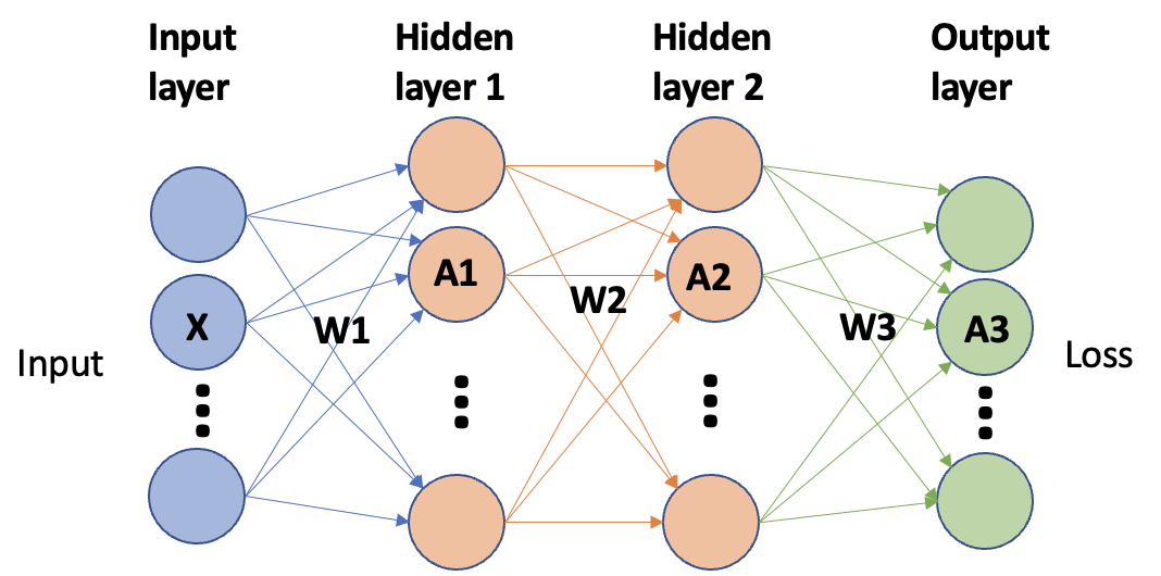 Let’s start with a simple example—a neural network with 2 hidden layers.