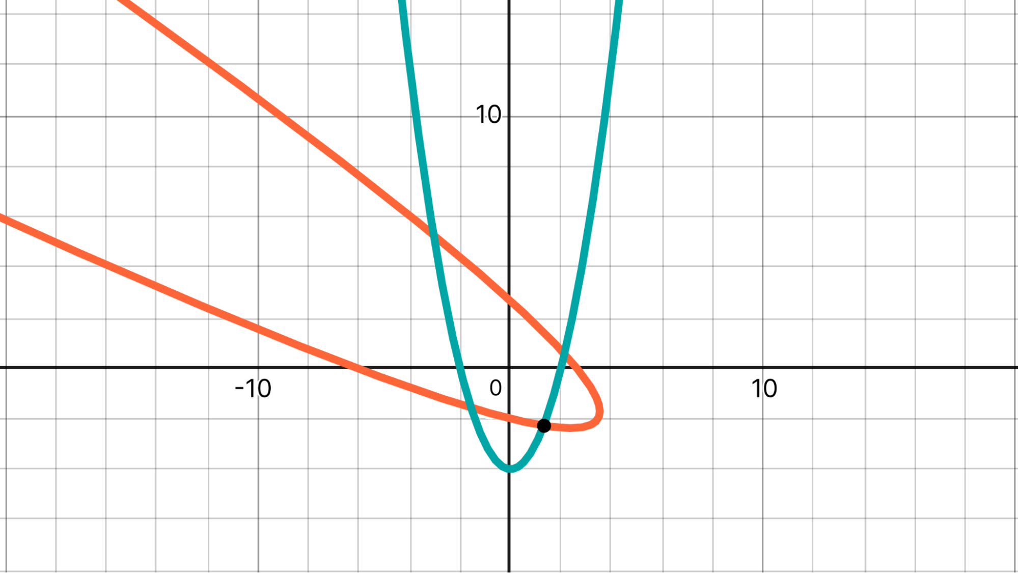 - Thus, we actually only need to find the intersection between that line and y = x² – 4.