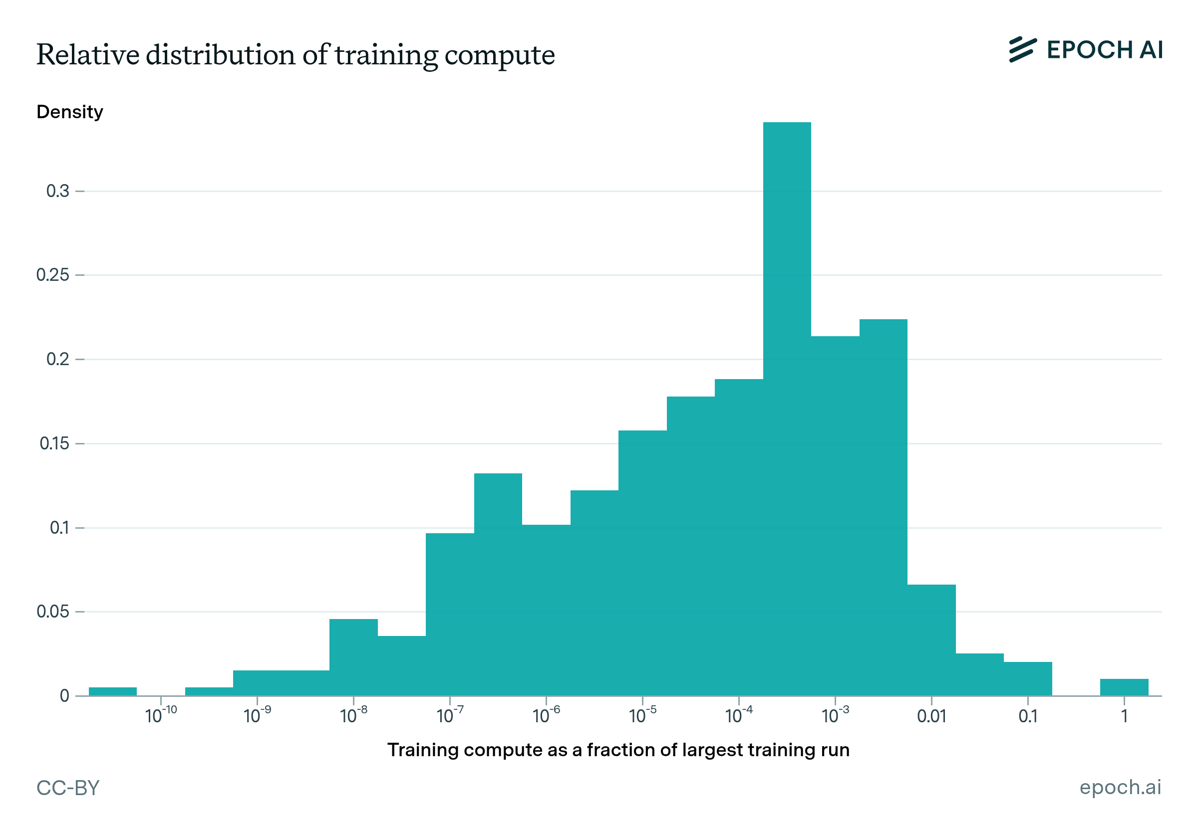 | Distribution of compute over AI models | Historical distribution of training compute across models | No |