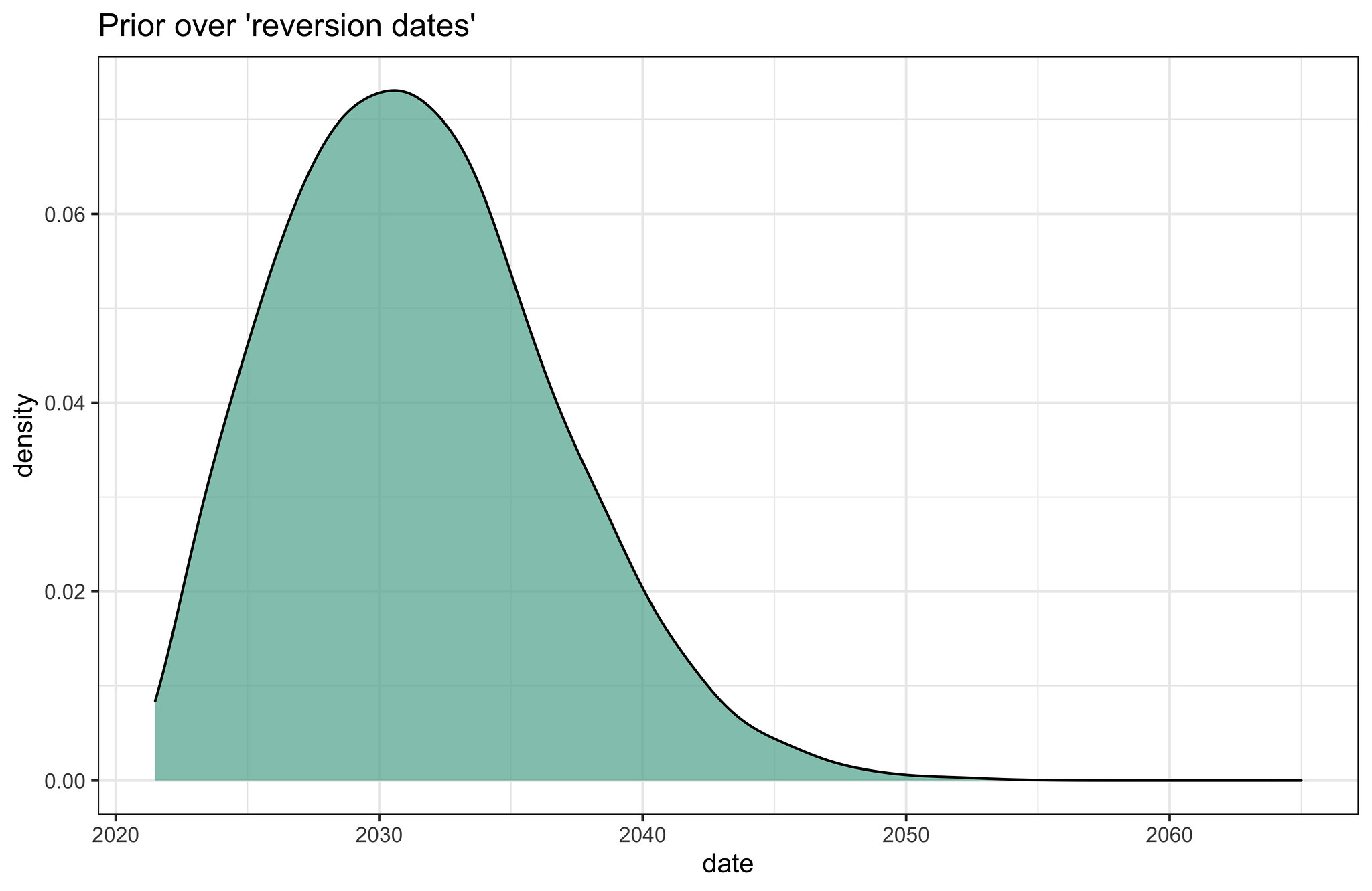 Fig 3. our best-guess for a prior over reversion dates, formed by mixing the previous distributions