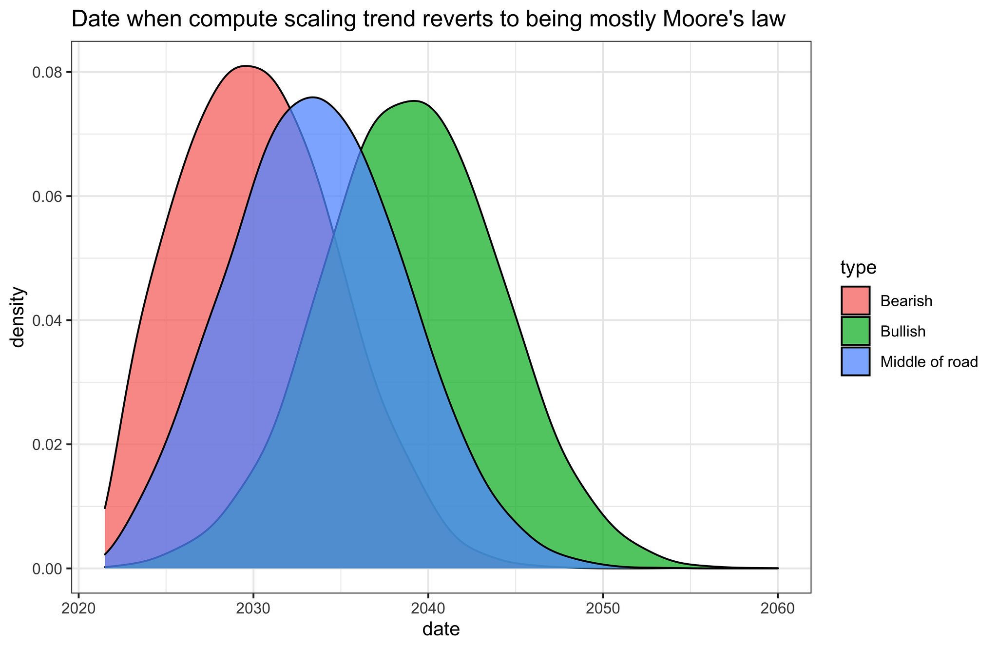 We can use this as our prior over when the fast-trend will revert to the more historically common trend associated with Moore’s law.