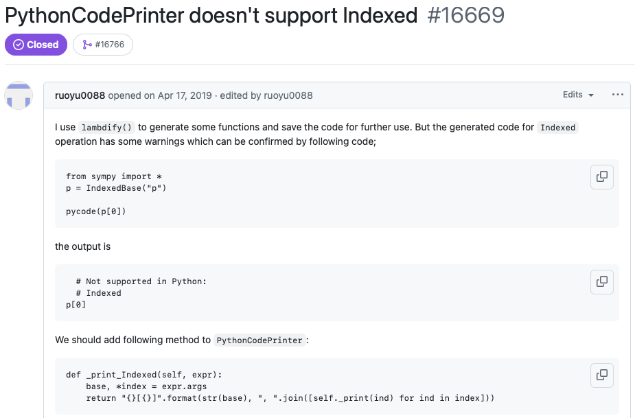 Let’s look at a concrete example that illustrates the simplicity of many issues in the benchmark. This issue from the sympy repository describes a straightforward problem that is easy to understand, even for someone not deeply familiar with the sympy codebase. The human annotators classified this particular task as a “<15 min fix,” and indeed, the corresponding PR affected only five lines of code.