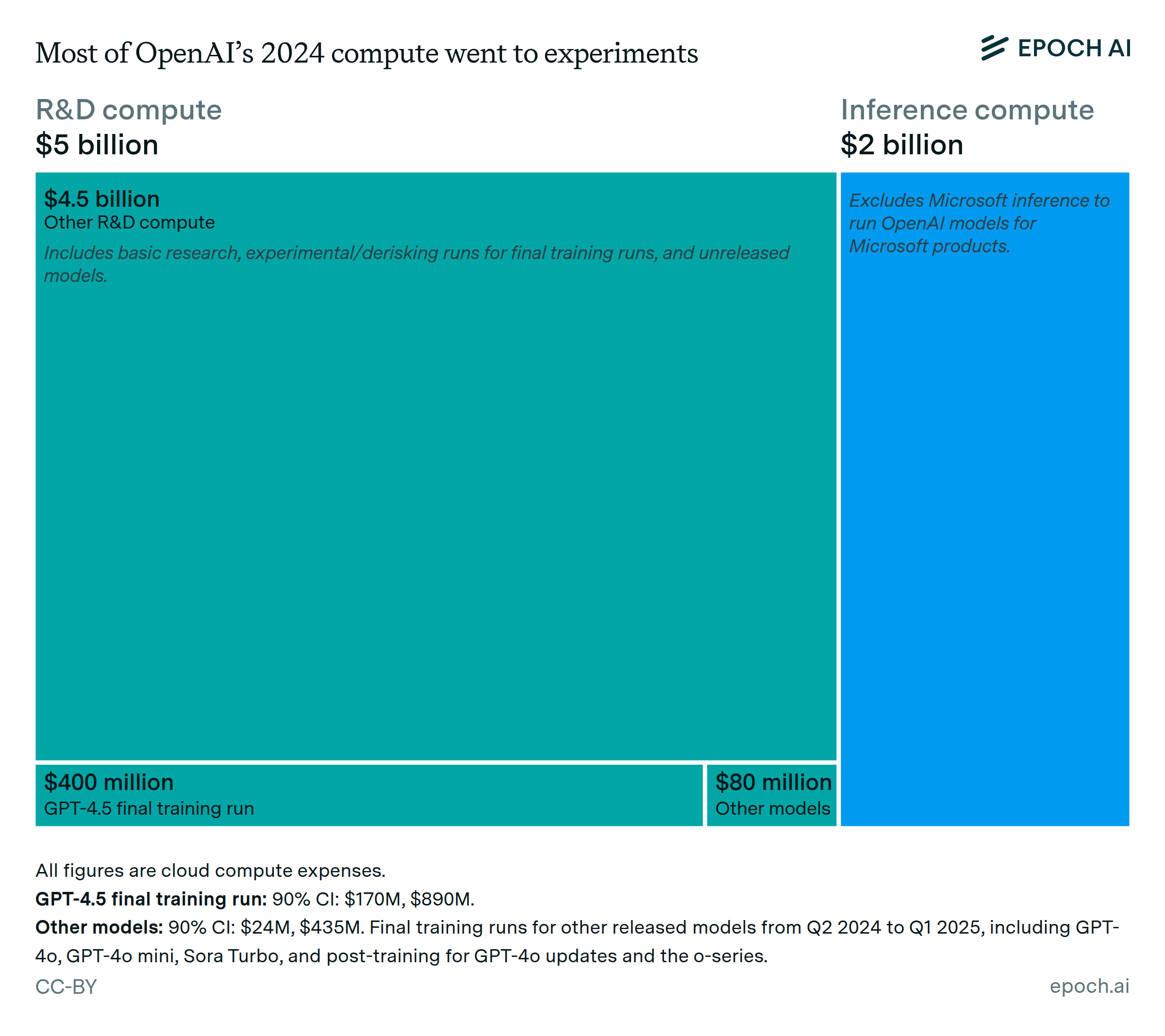 OpenAI spent ~$7B on cloud compute last year—mostly R&D (research, experiments, training). Only a small share went to final model training.