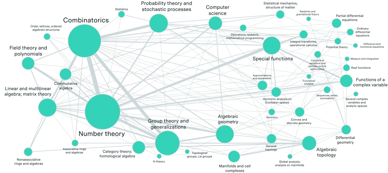 Figure 2: Graphical representation of the topics on the full FrontierMath benchmark, spanning a wide range of domains.