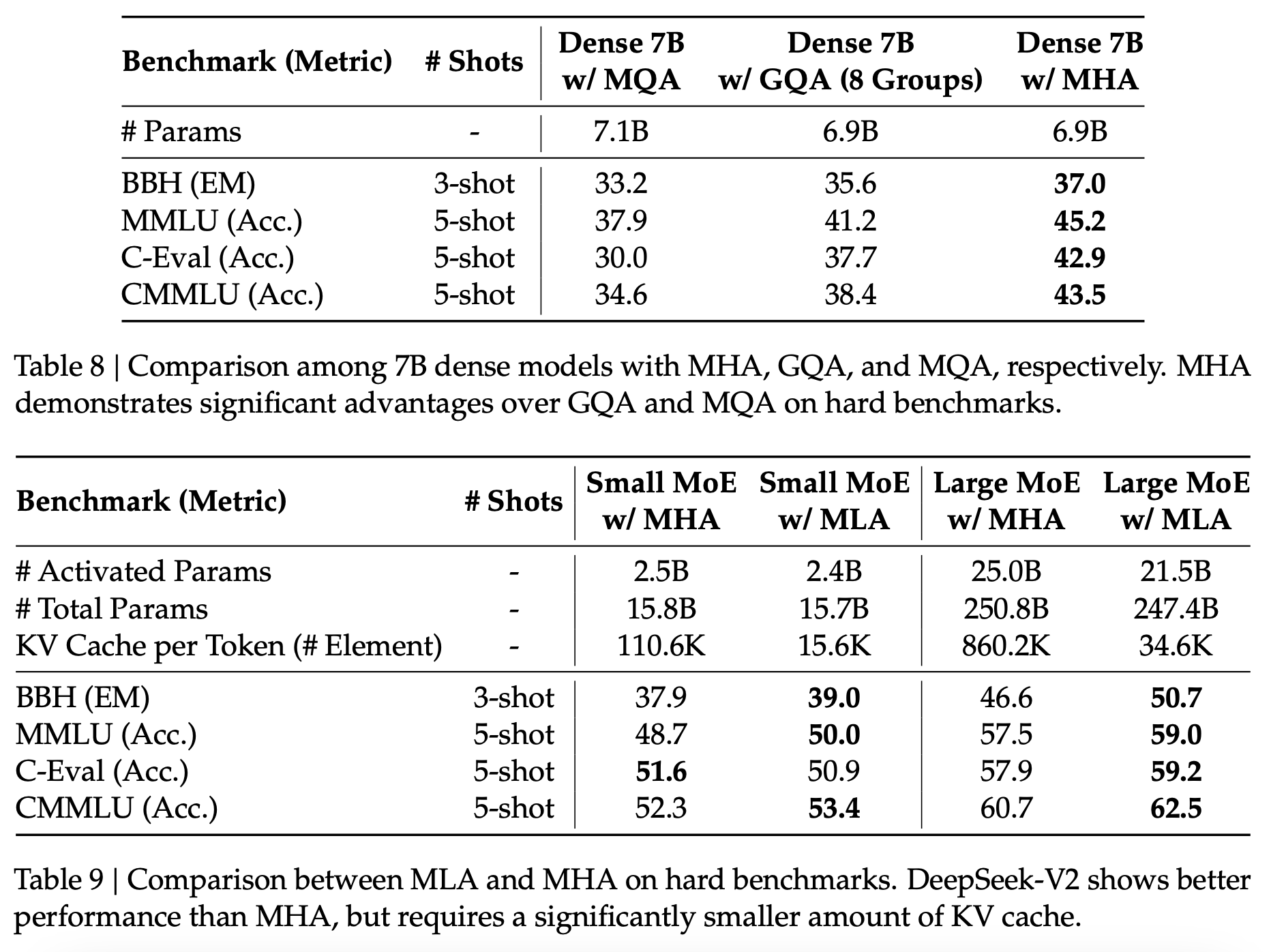 Figure 1: Results of the ablation experiments for attention mechanisms from the DeepSeek v2 paper.